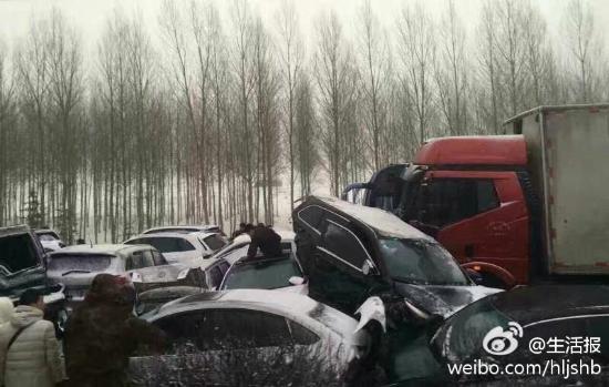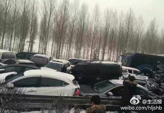 [哈尔滨至大庆高速公路近肇东承平路段杏鑫平台有40~50台车阁下连环相撞](撞车,撞雕栏,掉进沟里)双向周全堵车,有职员受伤,请互相转告不要进入哈大高速公路。